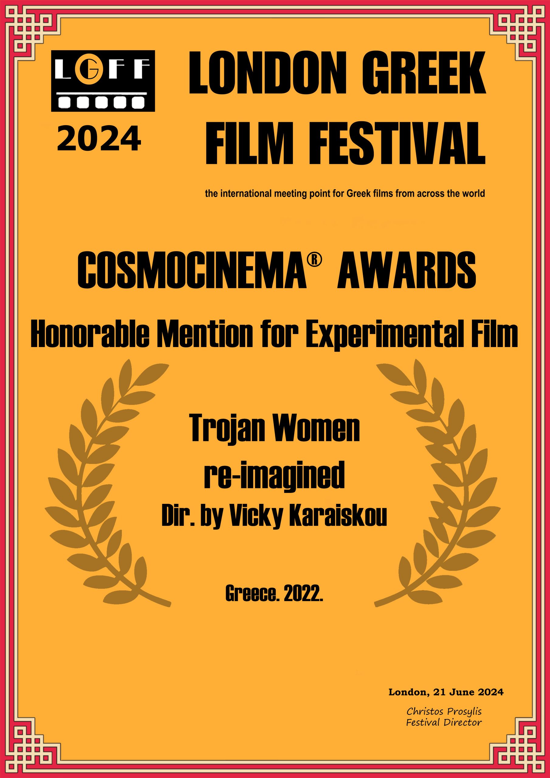 Honorable Mention for Experimental Film, Cosmocinema Awards, by the 2024 London Greek Film Festival (June 2024).